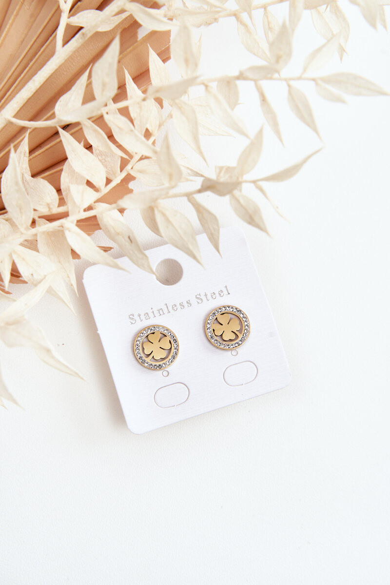 Boucles d oreilles trèfle en acier inoxydable couleur dorée