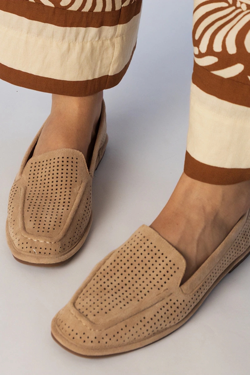 Mocassins ajourés couleur sable en simili daim, « Stanila »