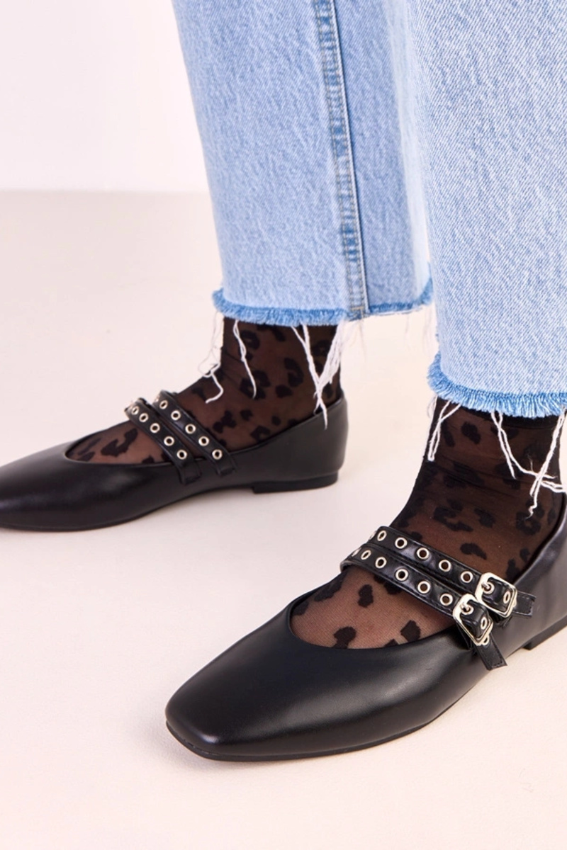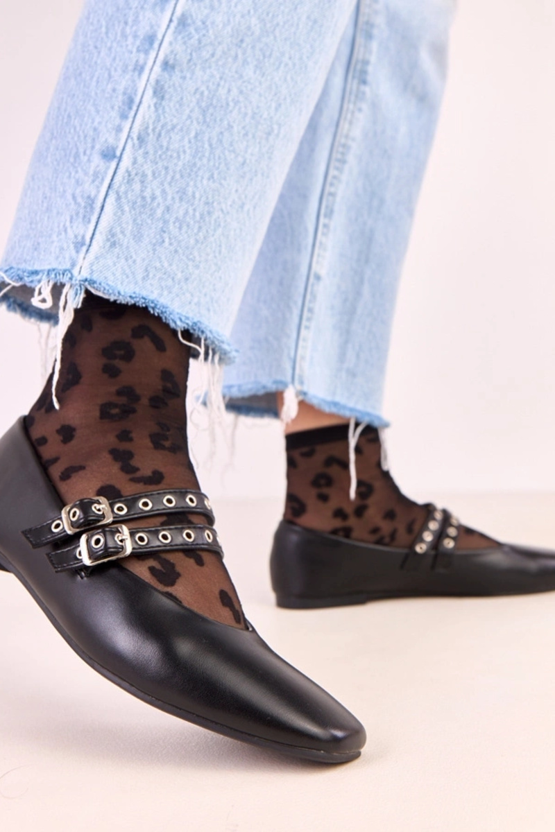 Ballerines Alfira en cuir noir avec bout carré et boucles