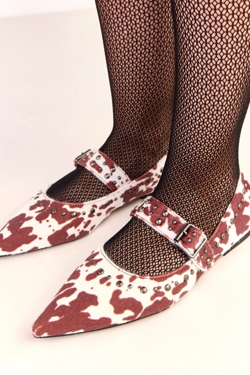 Ballerines Loresi en cuir marron à motif tacheté, décorées de clous