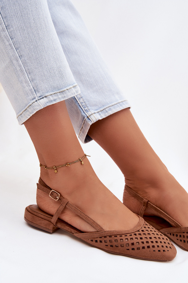 Ballerines ajourées en suède synthétique couleur marron Farivelle
