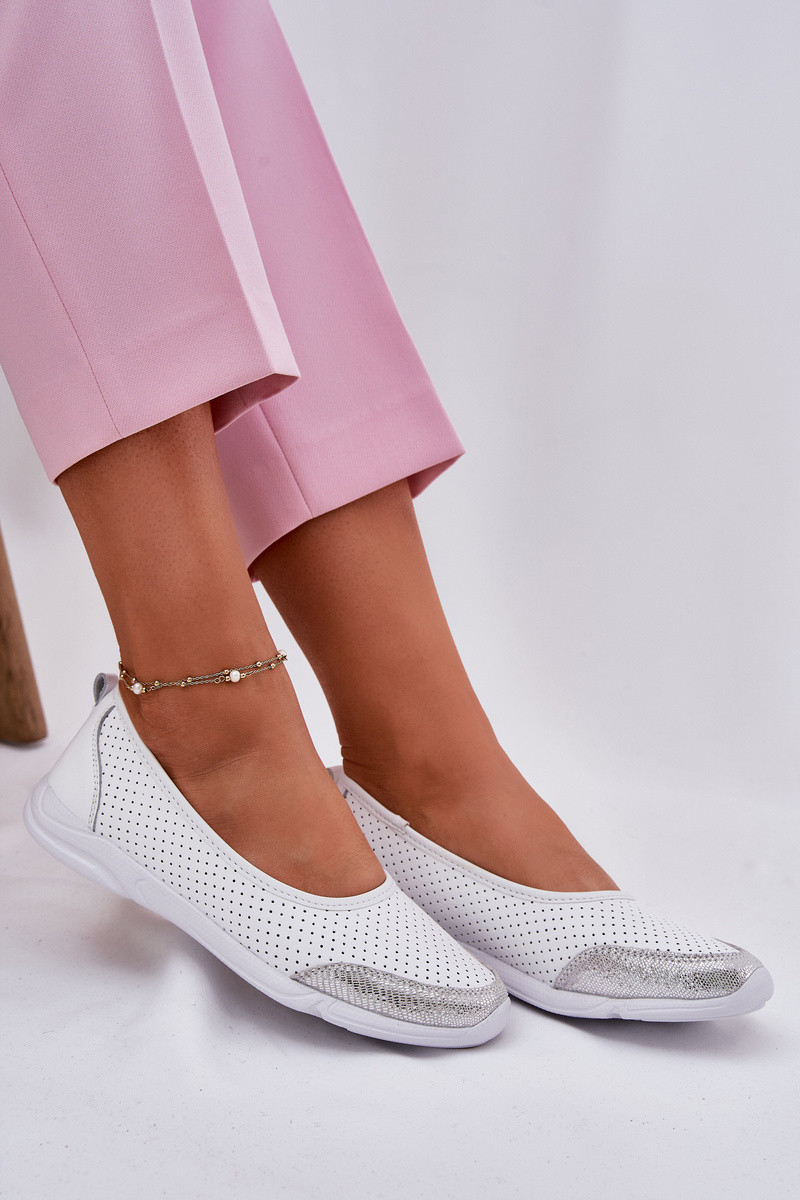 Peau Féminin Ballerines ajourées couleur blanche Lucy