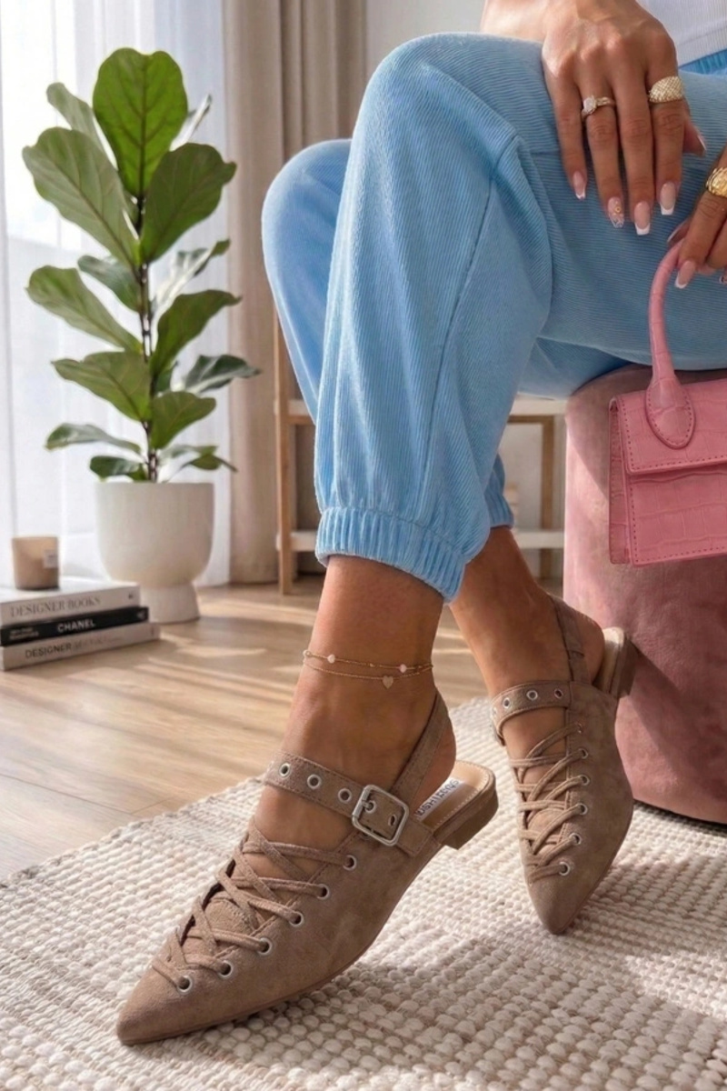 Ballerines couleur caramel à talon ouvert ornées de lacets Seraphina