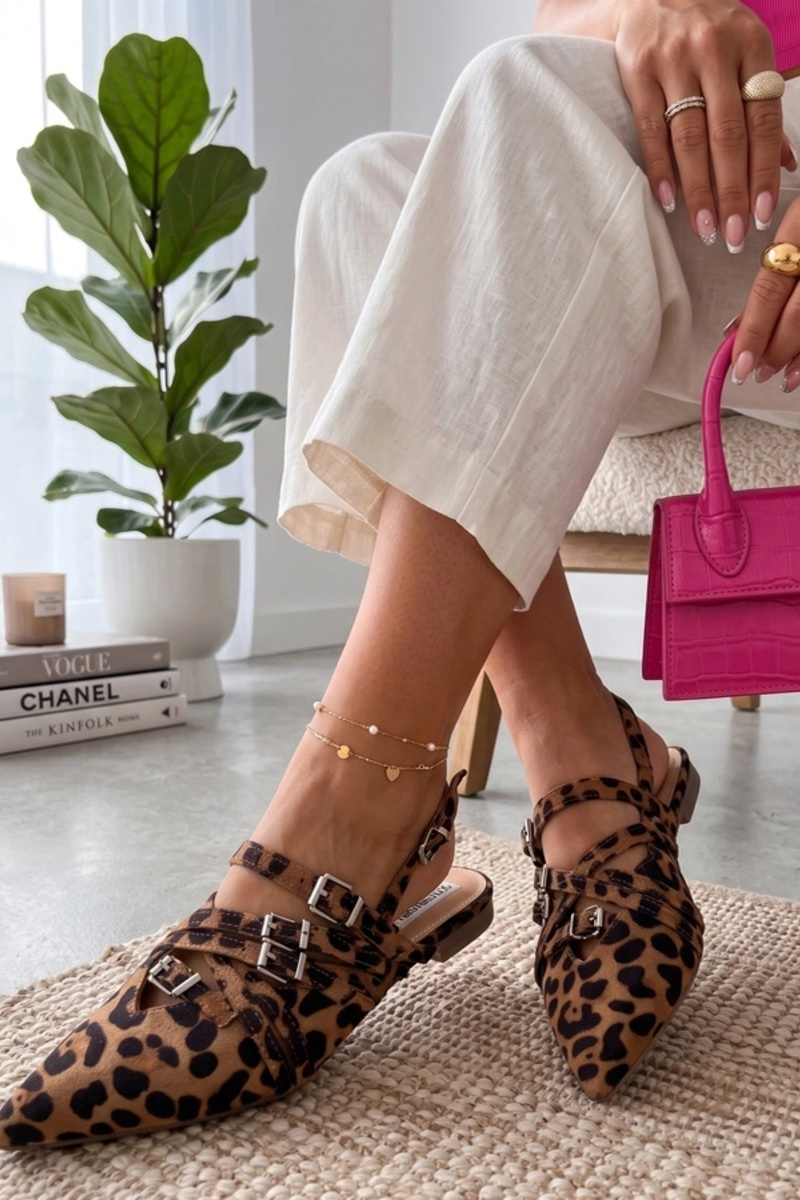 Ballerines à motif panthère avec talon ouvert ornées de rubans Theodora