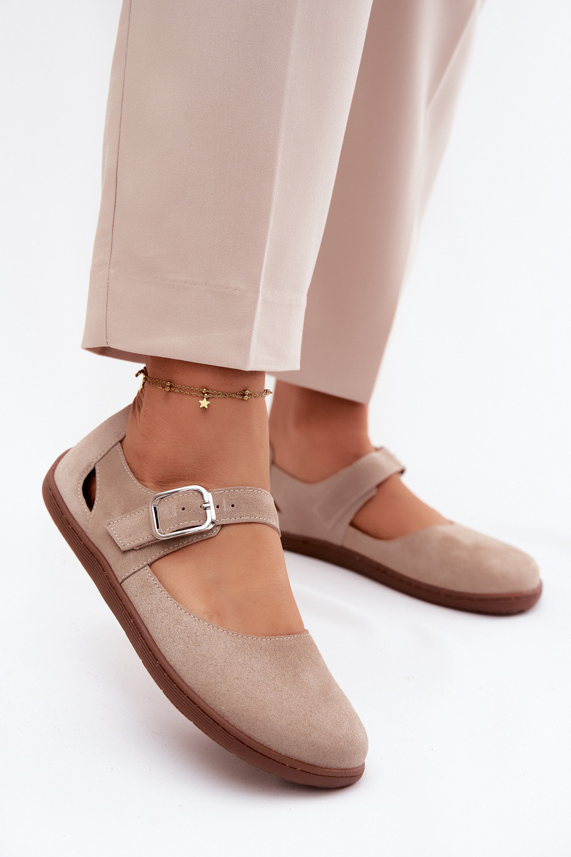 Peau Ballerines en daim Barefoot avec des sangles Zazoo N1319 beige