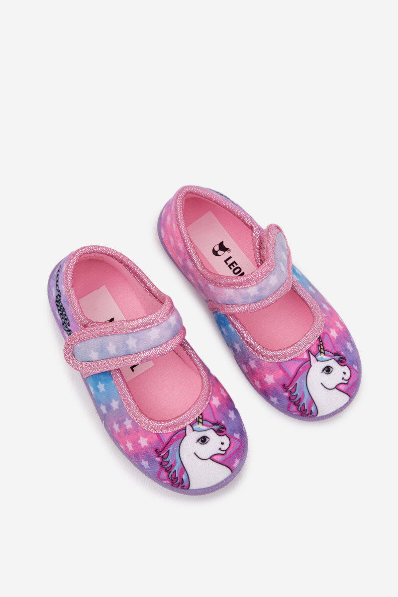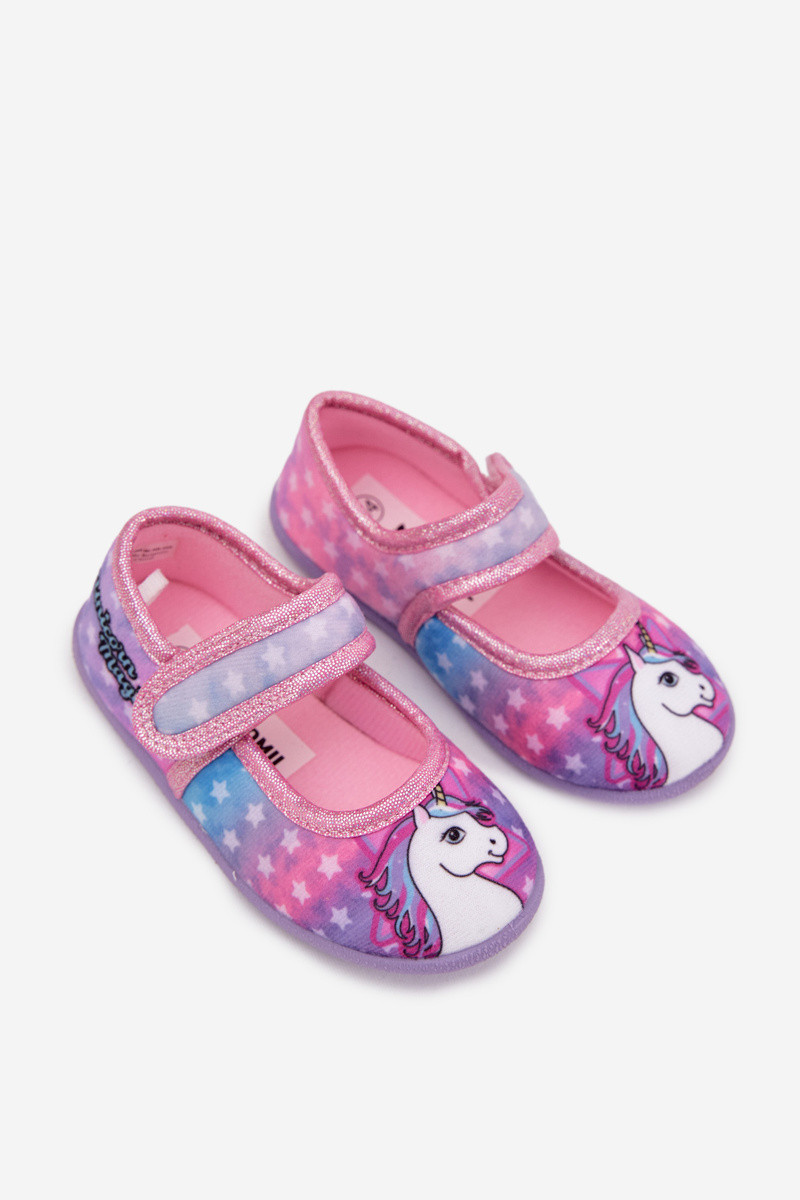ballerines Chaussons Dla DzieÀczynek avec attaches adhésives UNICORN couleur rose Silviera