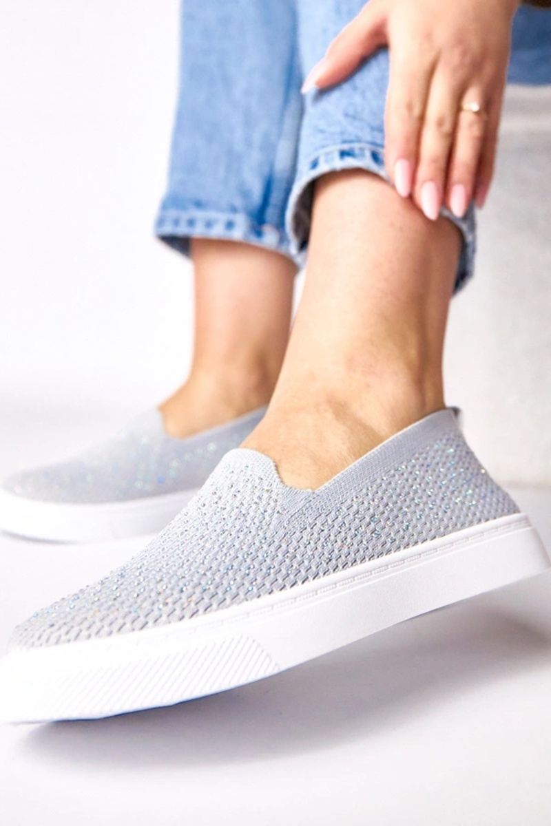 Baskets en tissu grises à enfiler avec zircon Gabrielle