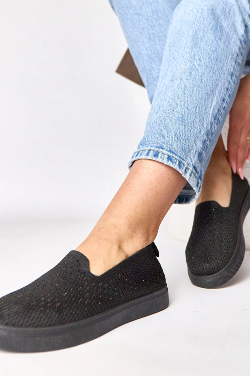 Baskets en tissu noires à enfiler avec zircon Gabrielle