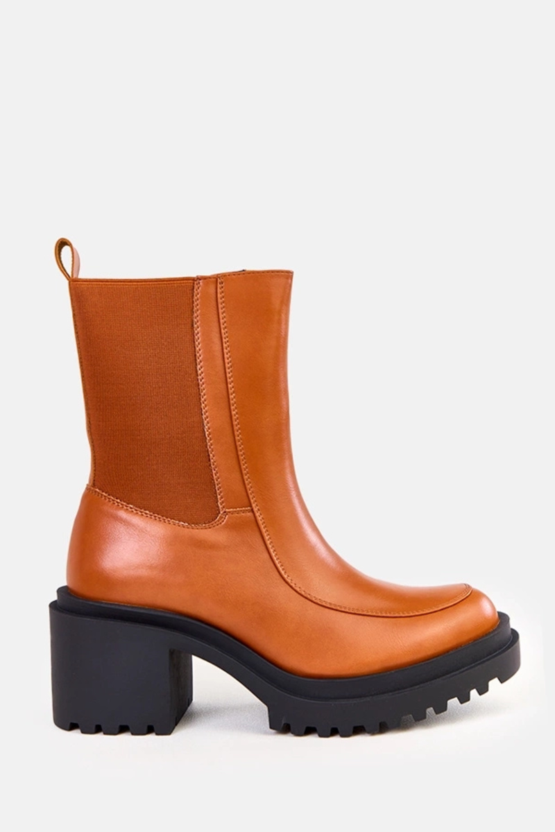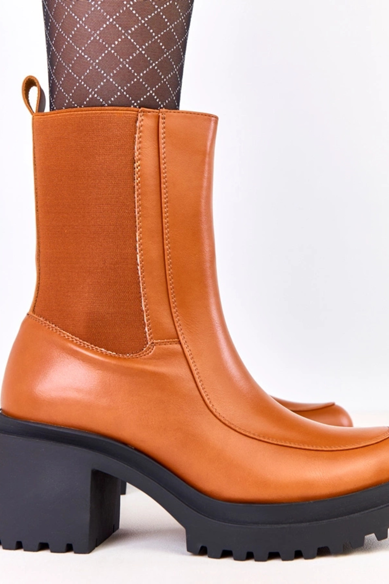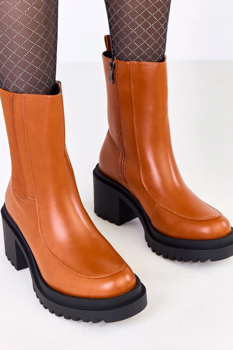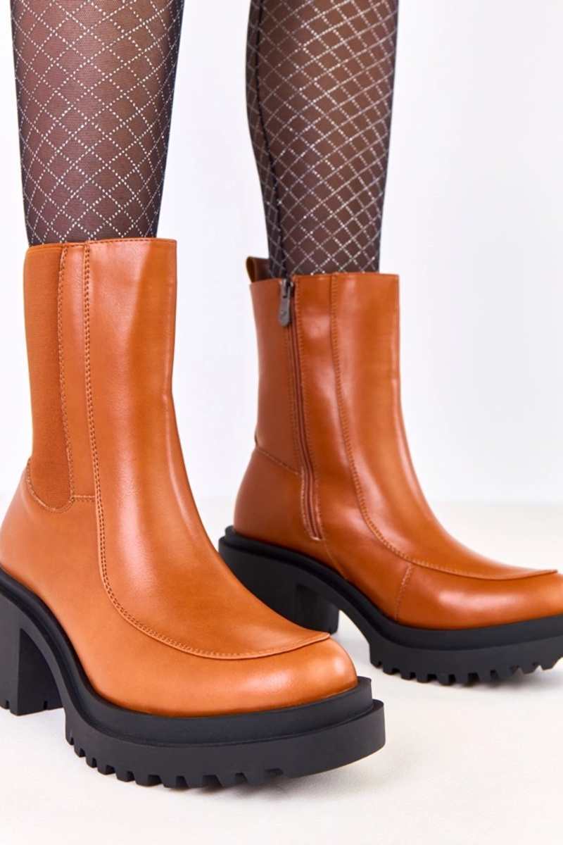 Brązowe botki na słupku z elastyczną wstawką Jarley