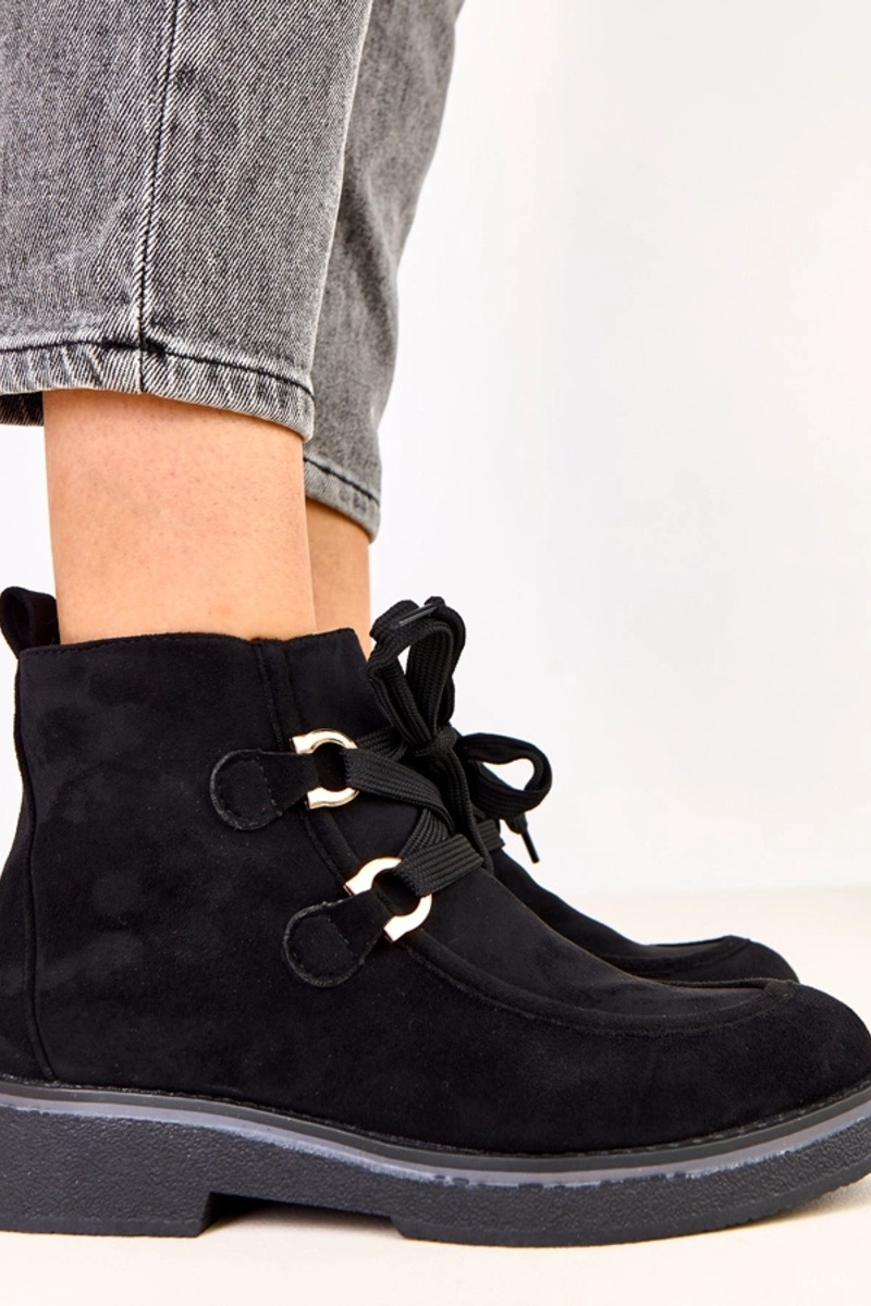 Bottines chaudes noires avec lacets décoratifs, Katrins