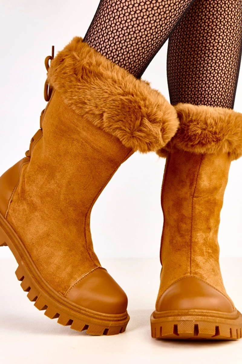 Bottines beiges en simili daim avec tige et fourrure Satisa