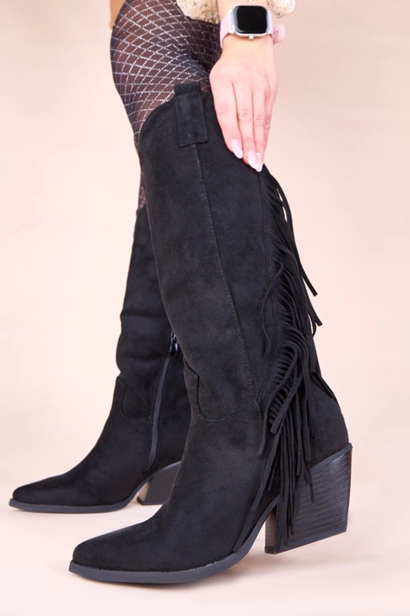 Bottes de cowboy noires avec franges Misa