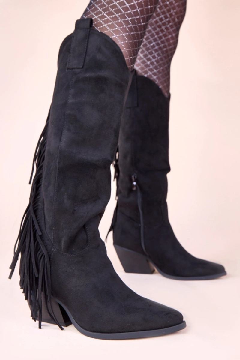Bottes de cowboy noires avec franges...