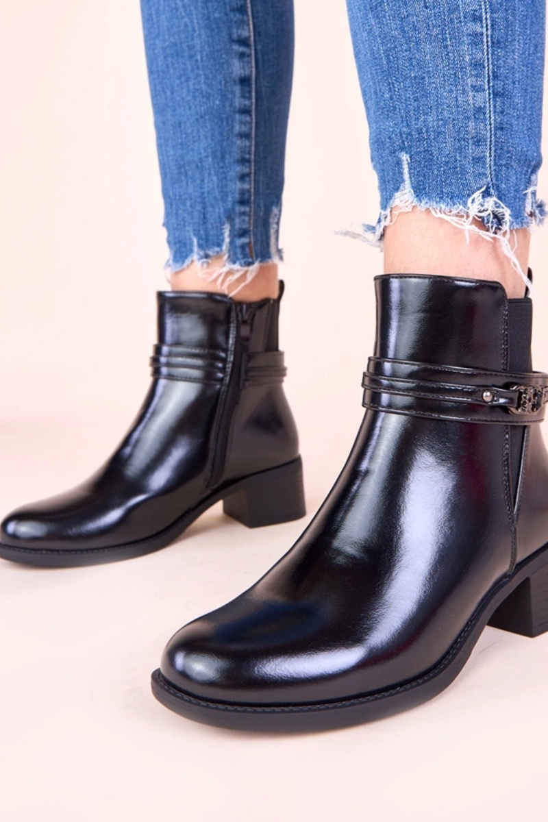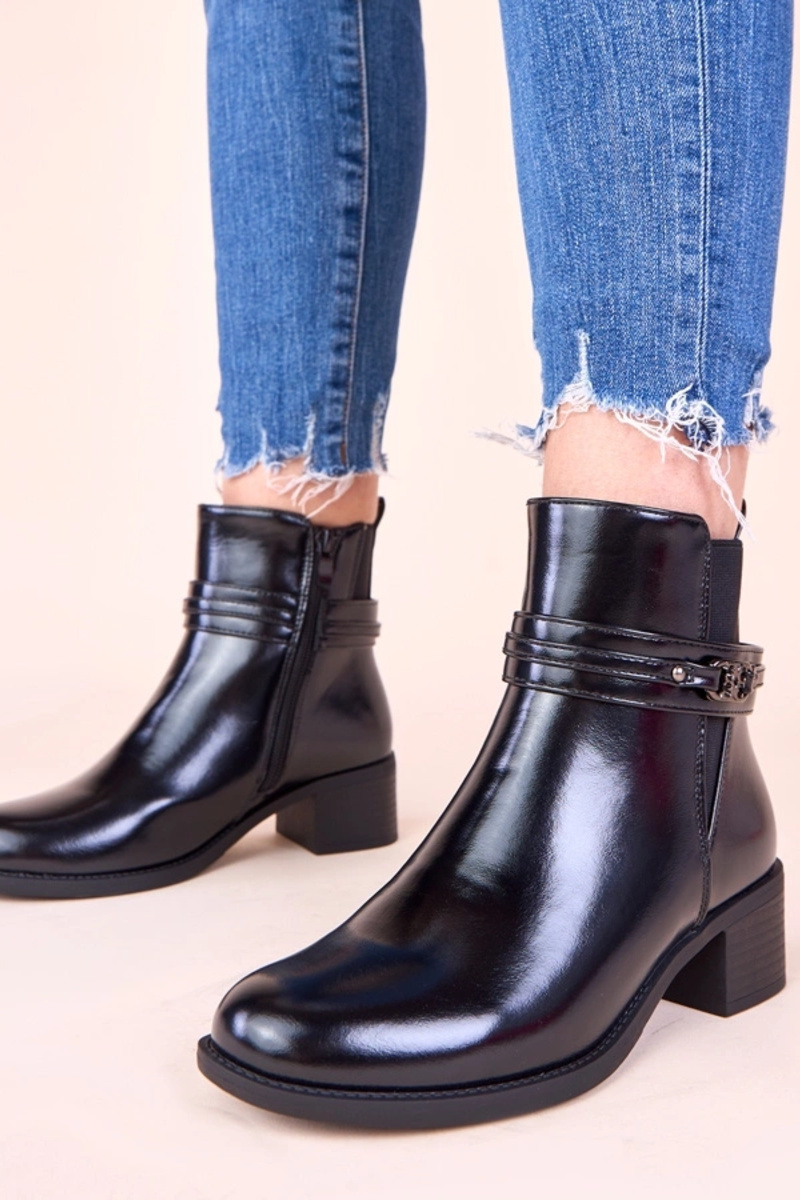 Bottines noires à talon bloc avec une sangle décorative Lilua
