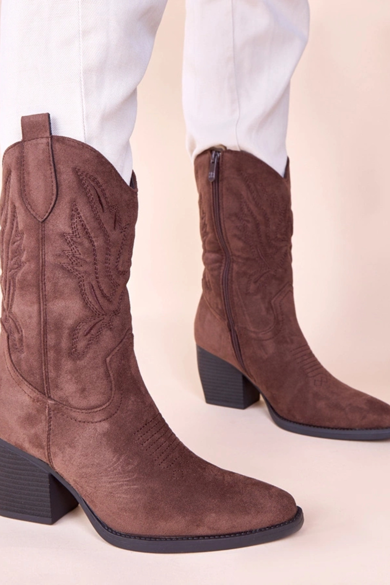 Bottines marron de style cowboy avec application brodée décorative Cassa
