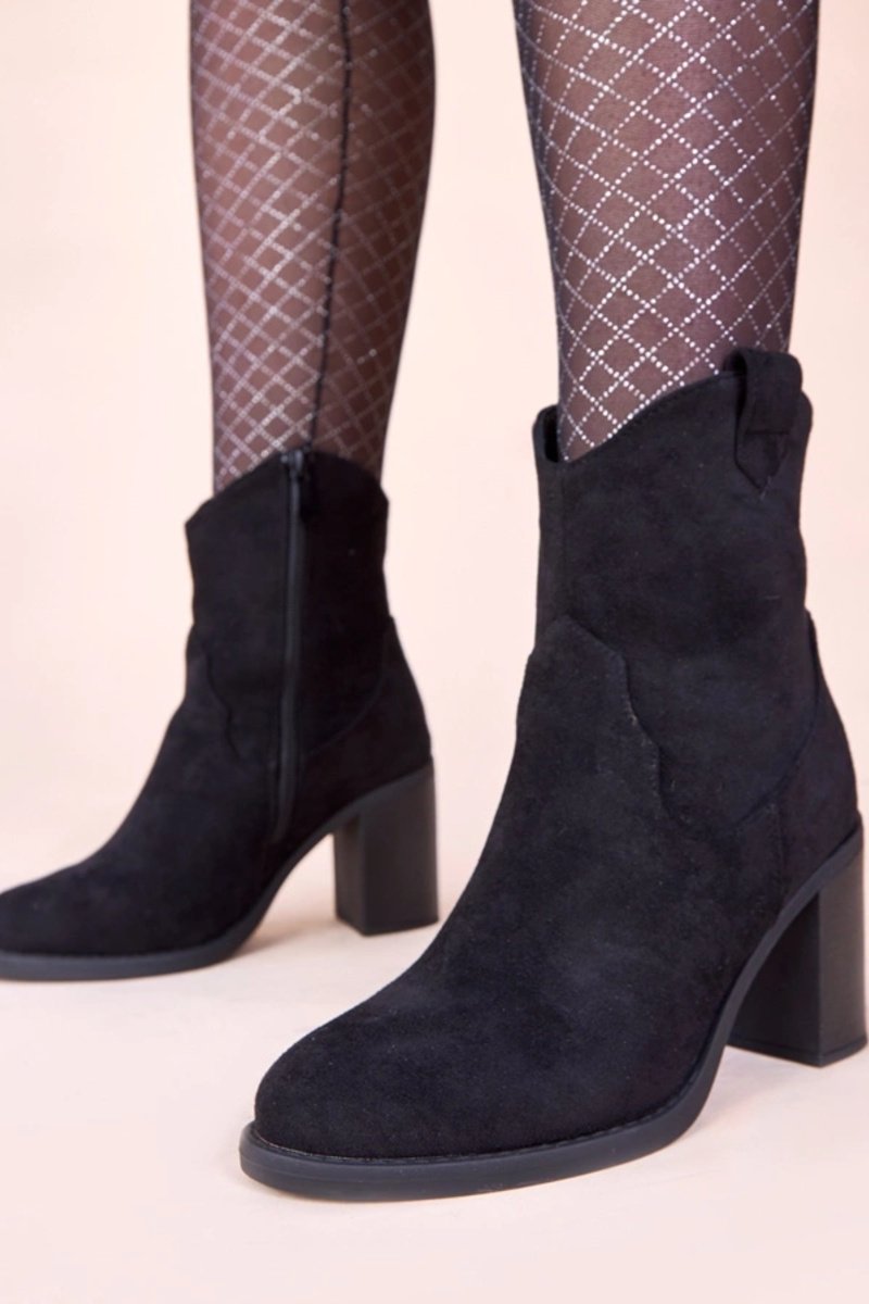 Bottines noires à talon bloc en suède synthétique Mirmi