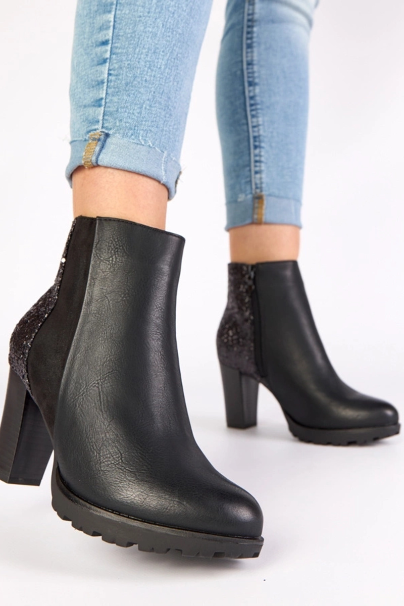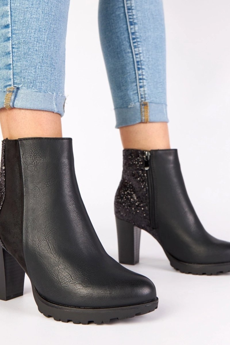 Bottines noires sur talon avec arrière brillant Ambre