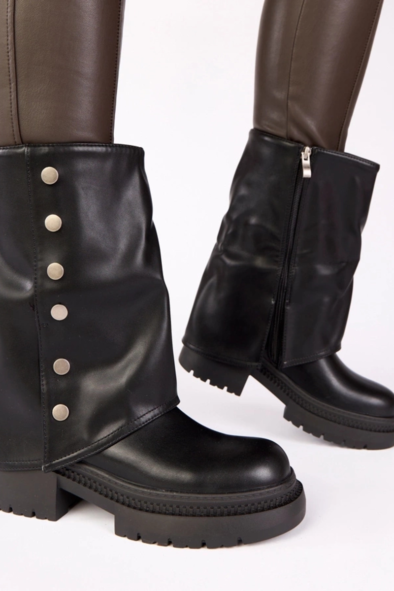 Bottines noires avec tige repliée sur plateforme Carla
