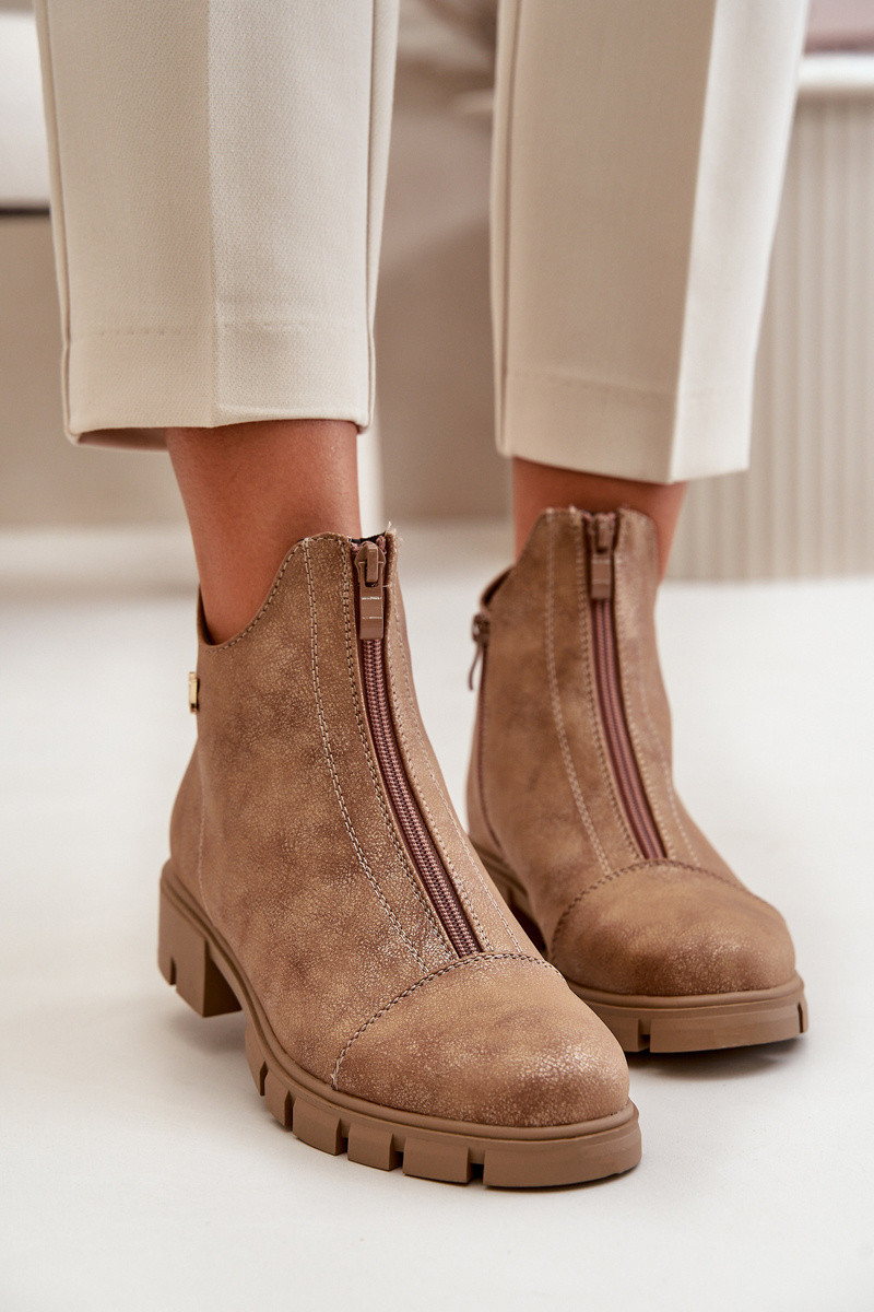 Bottines pour femmes en simili cuir couleur marron-or Verietta, isolées