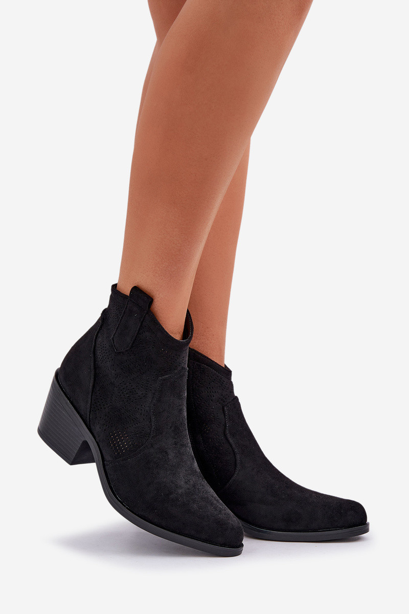 Bottines style cowboy en simili daim ajouré S.Barski HY51-061 noires