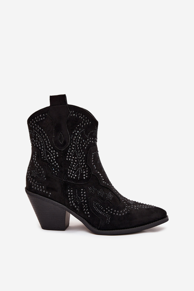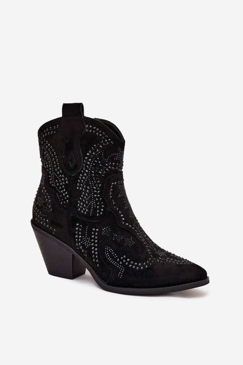 Bottines isolées pour femmes de style cowboy avec décoration, noires Lelira