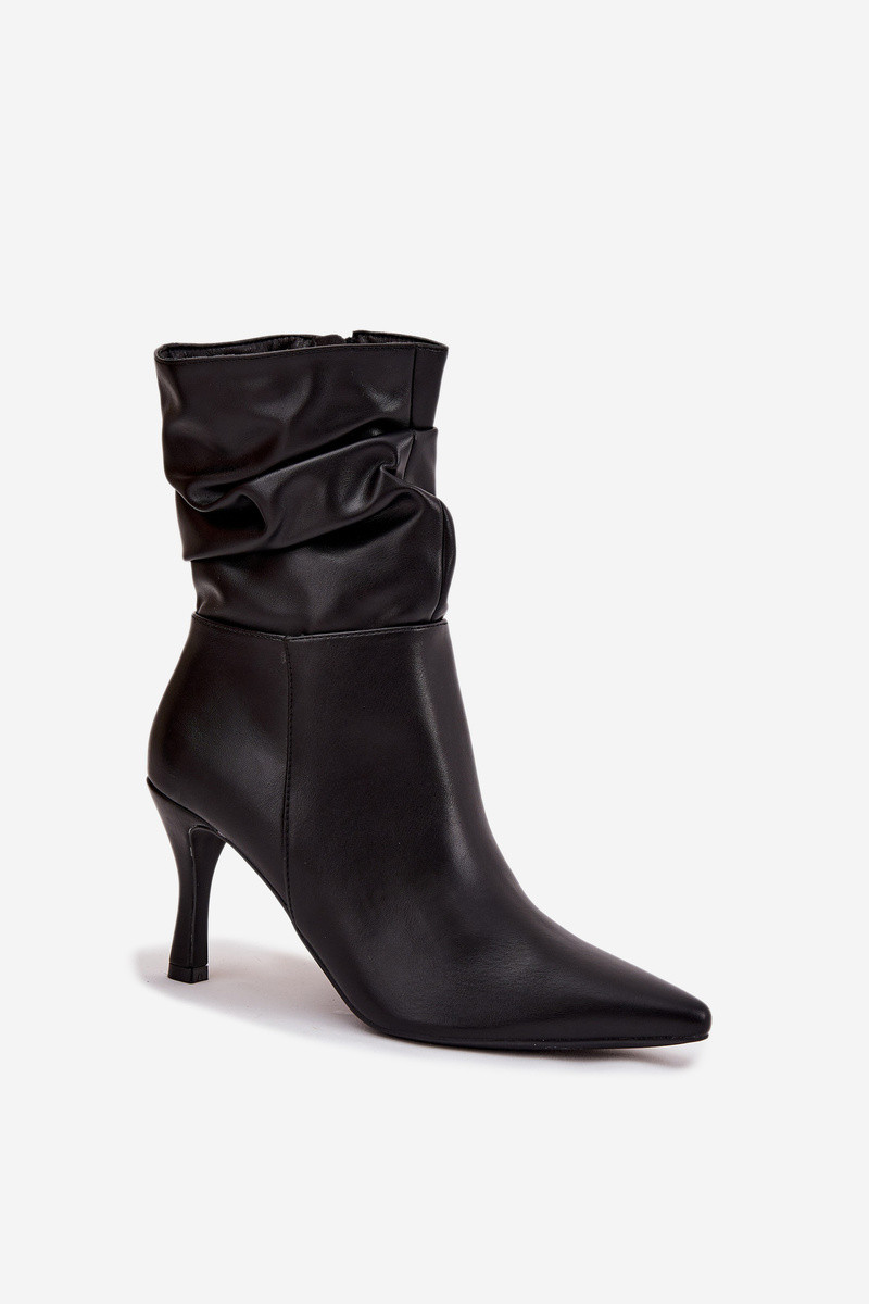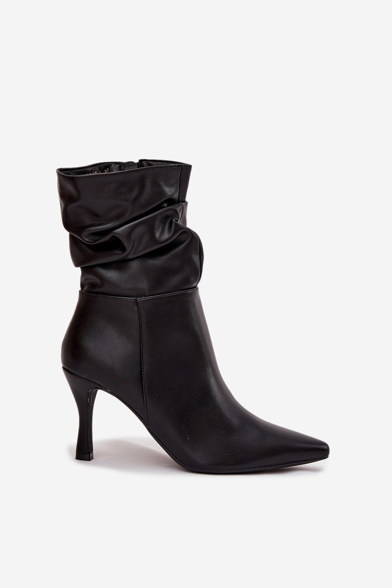 Bottines pour femmes avec talons fins, tige courbée et fermeture couleur noire "Ulisse"