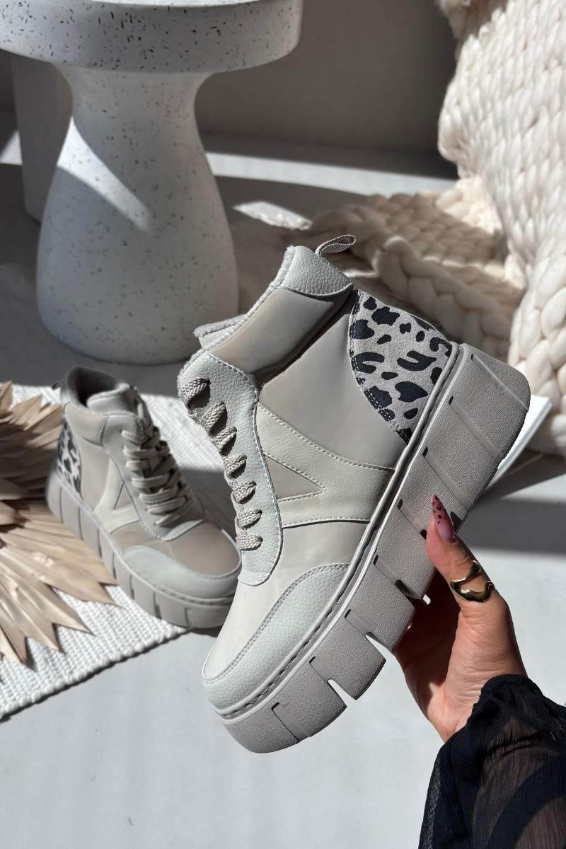 Bottines en cuir beige pour femmes avec plateforme Vinceza 66838