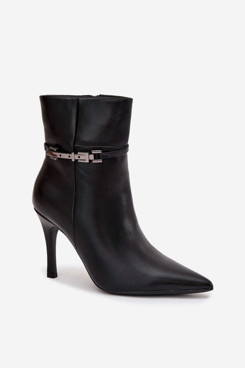 Bottines pour femmes noires doublées de chaleur avec talons fins, sangles et éléments argentés « Bellisse »
