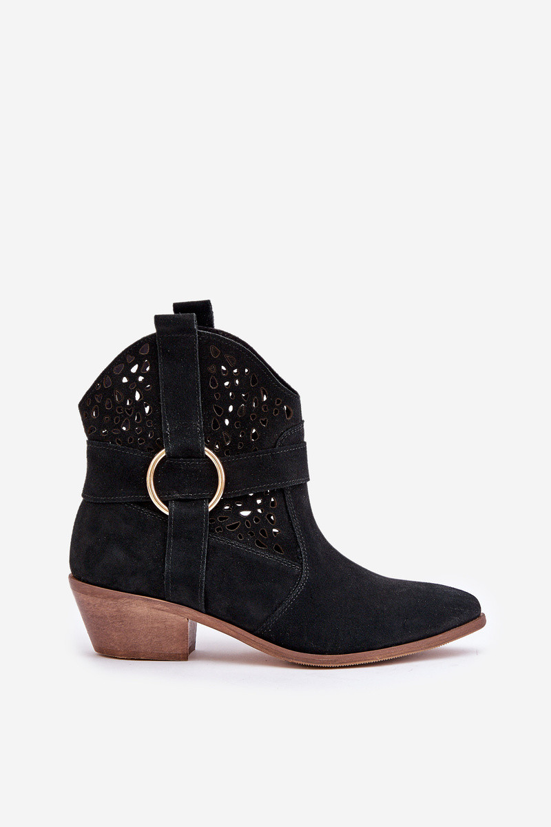 Chaussures en daim style coÀ-boy avec des éléments ajourés avec des talons Zazoo 2994 couleur noire