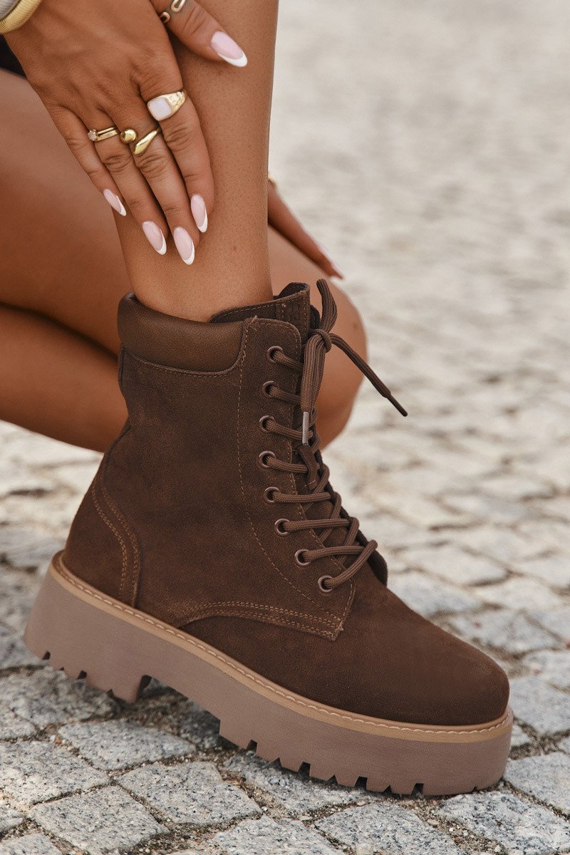 Bottines en daim pour femmes avec lacets Big Star SS274792 brunes