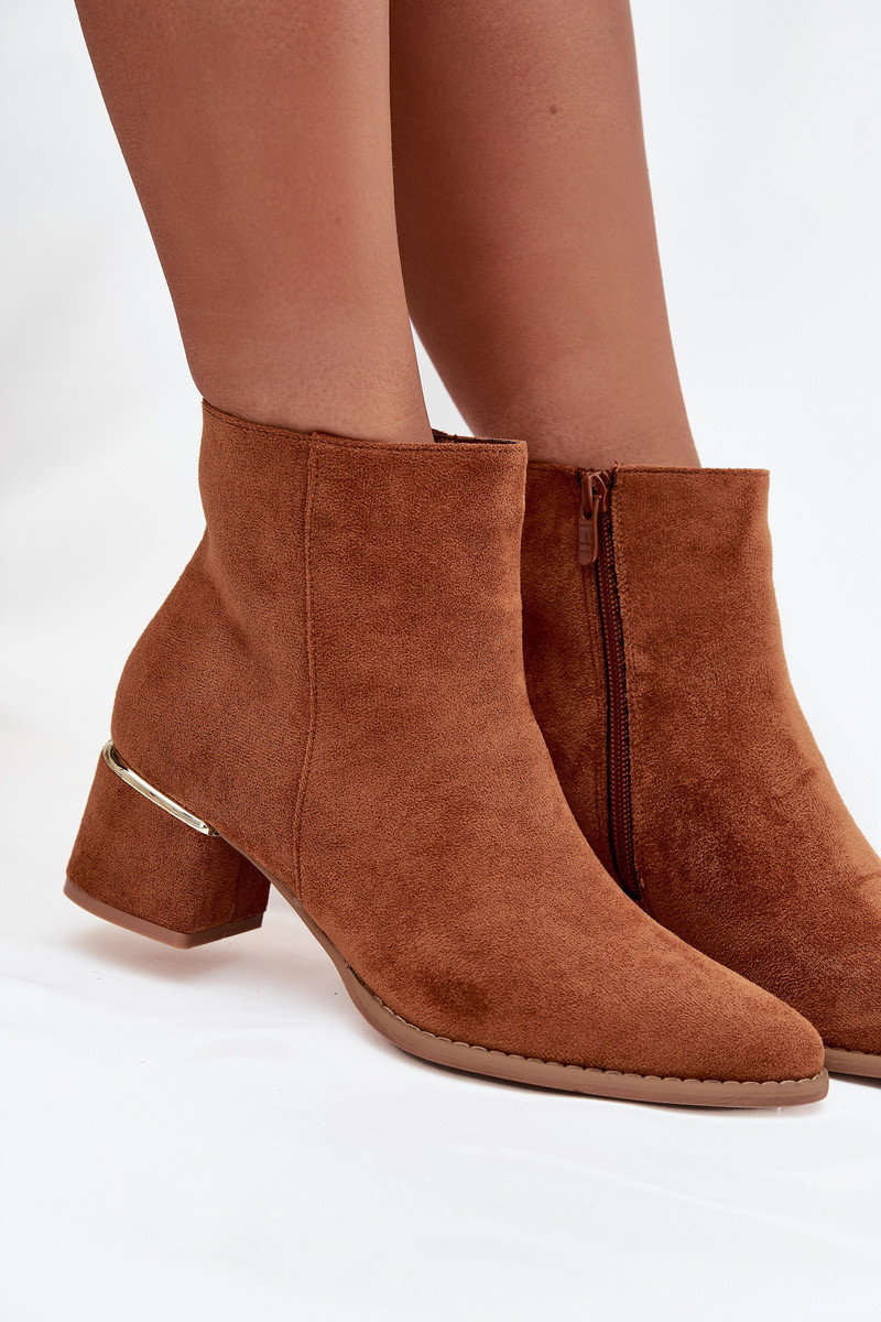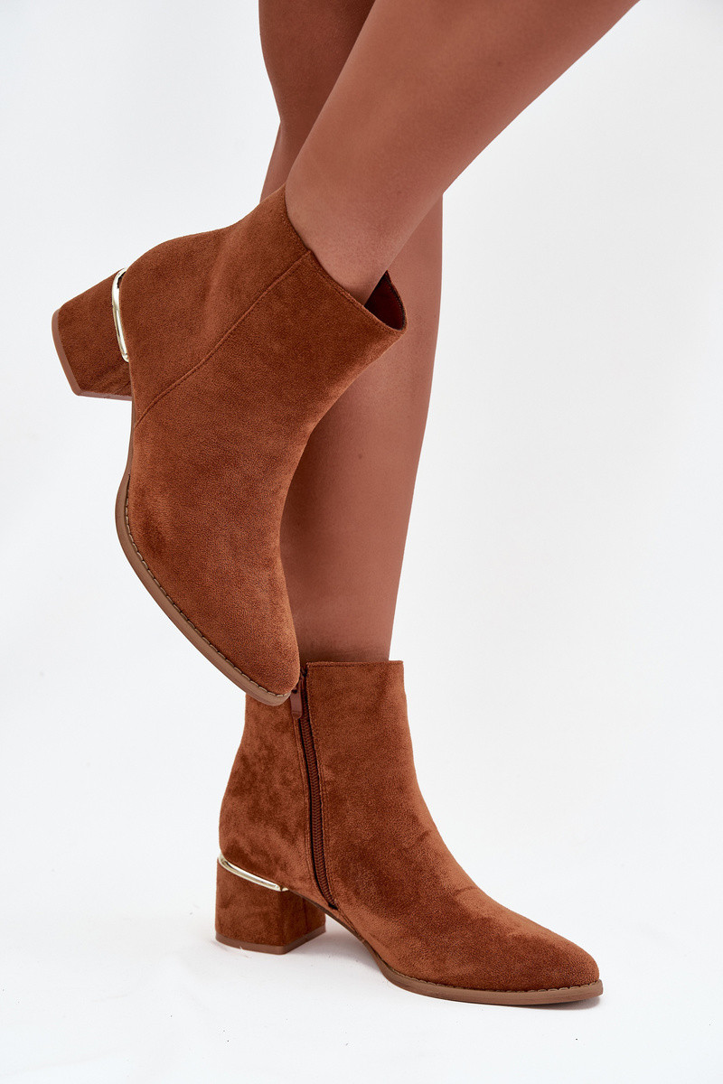 Bottines brunes pour femmes isolées avec talons et éléments dorés Nolessa
