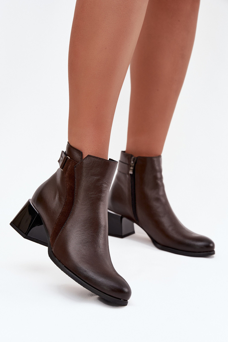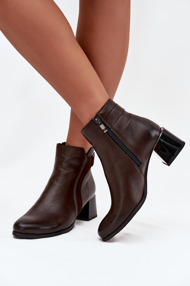 Bottines en cuir couleur chocolat pour femmes avec talons Zazoo 60563