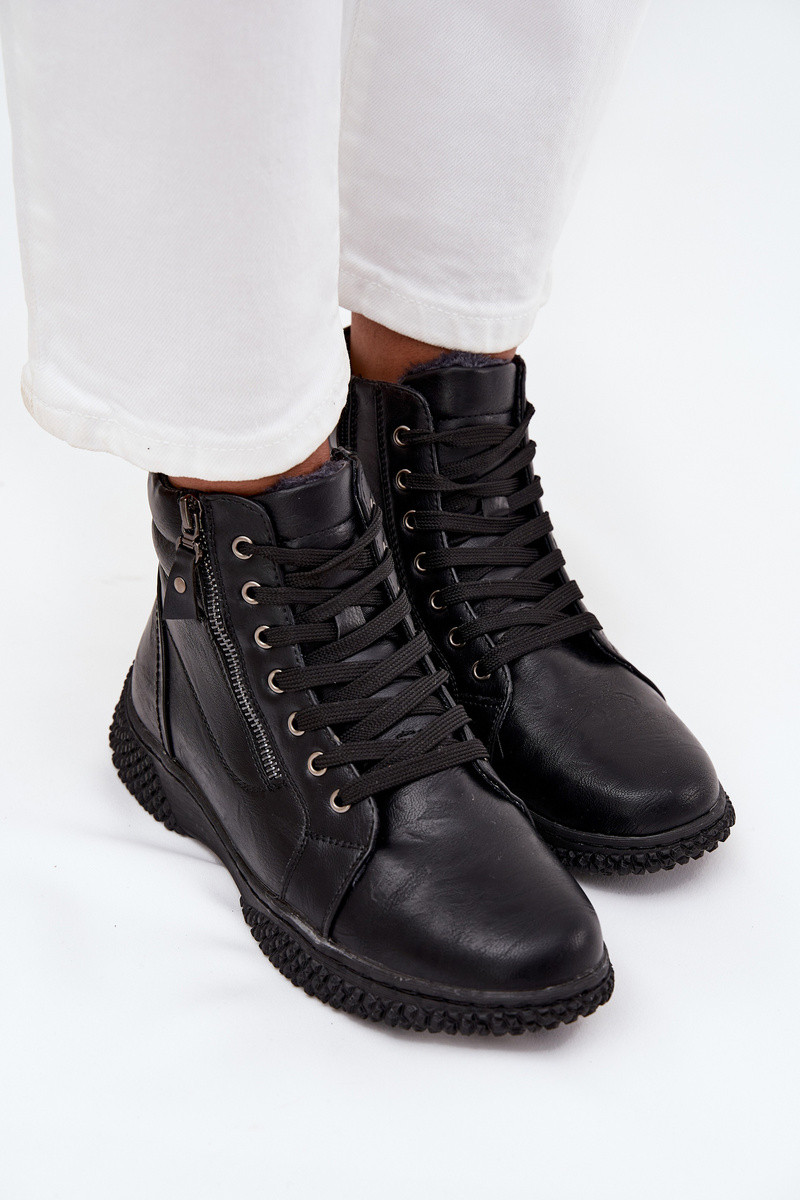 Bottines chaudes en cuir noir pour femmes avec fourrure intérieure en cuir écologique Ulverina