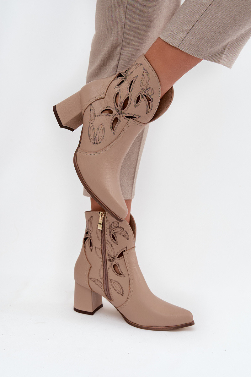 Peau avec des éléments ajourés Bottes pour femmes Zazoo 3647 couleur ivoire