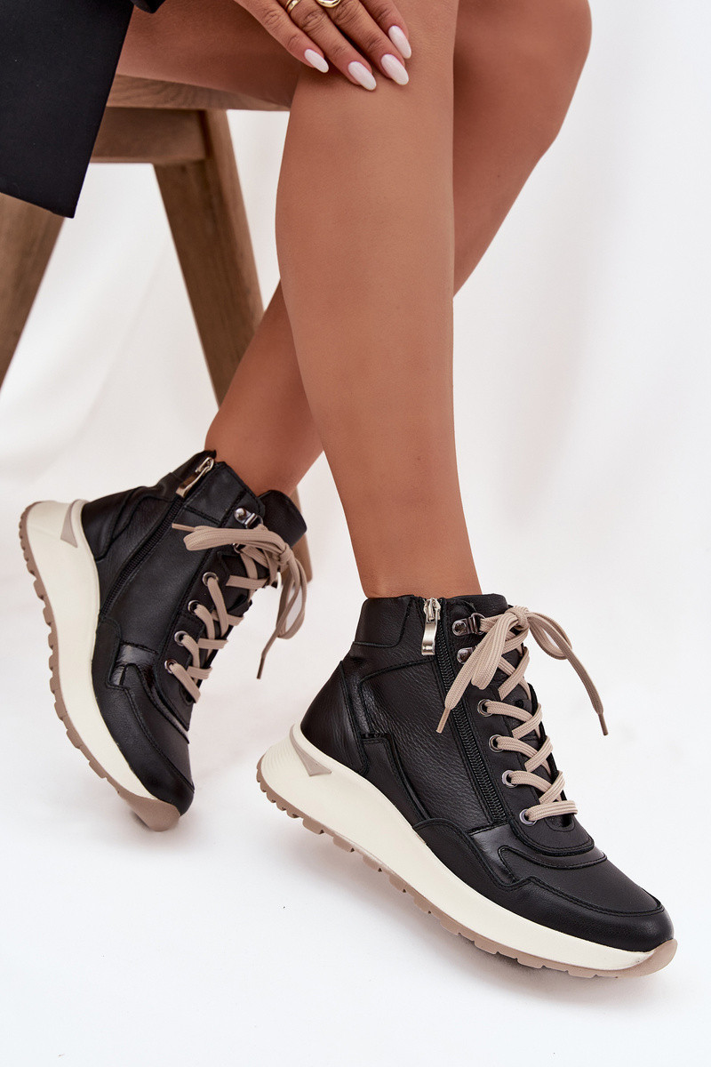 Bottines sportives pour femmes sur plateforme en cuir véritable Zazoo Z1239 noires