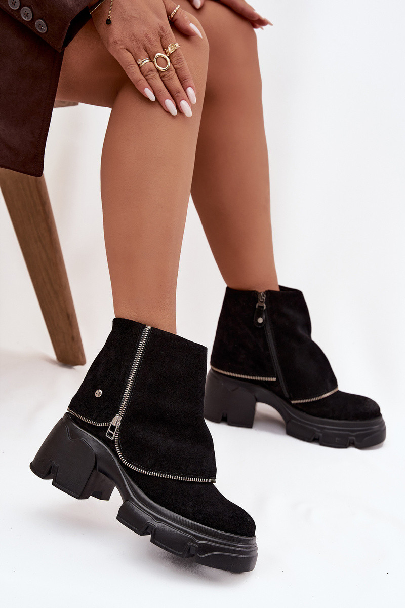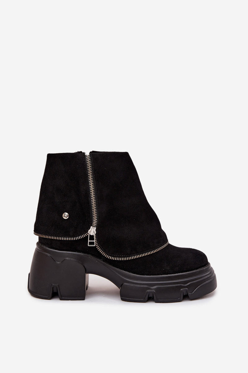 Bottines en cuir noires avec cholewa brodée Tai turiciejka 07145-01