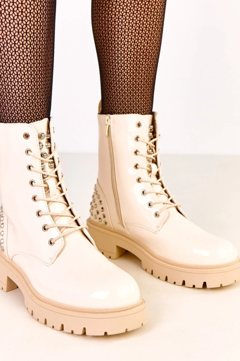 mocassins pour femmes à talons larges avec ornements beige Iluvana
