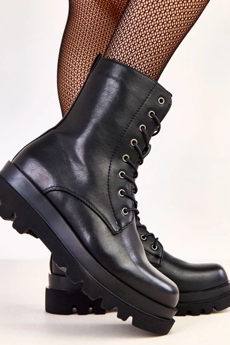 Bottes de randonnée classiques pour femmes noires en simili cuir Nargila