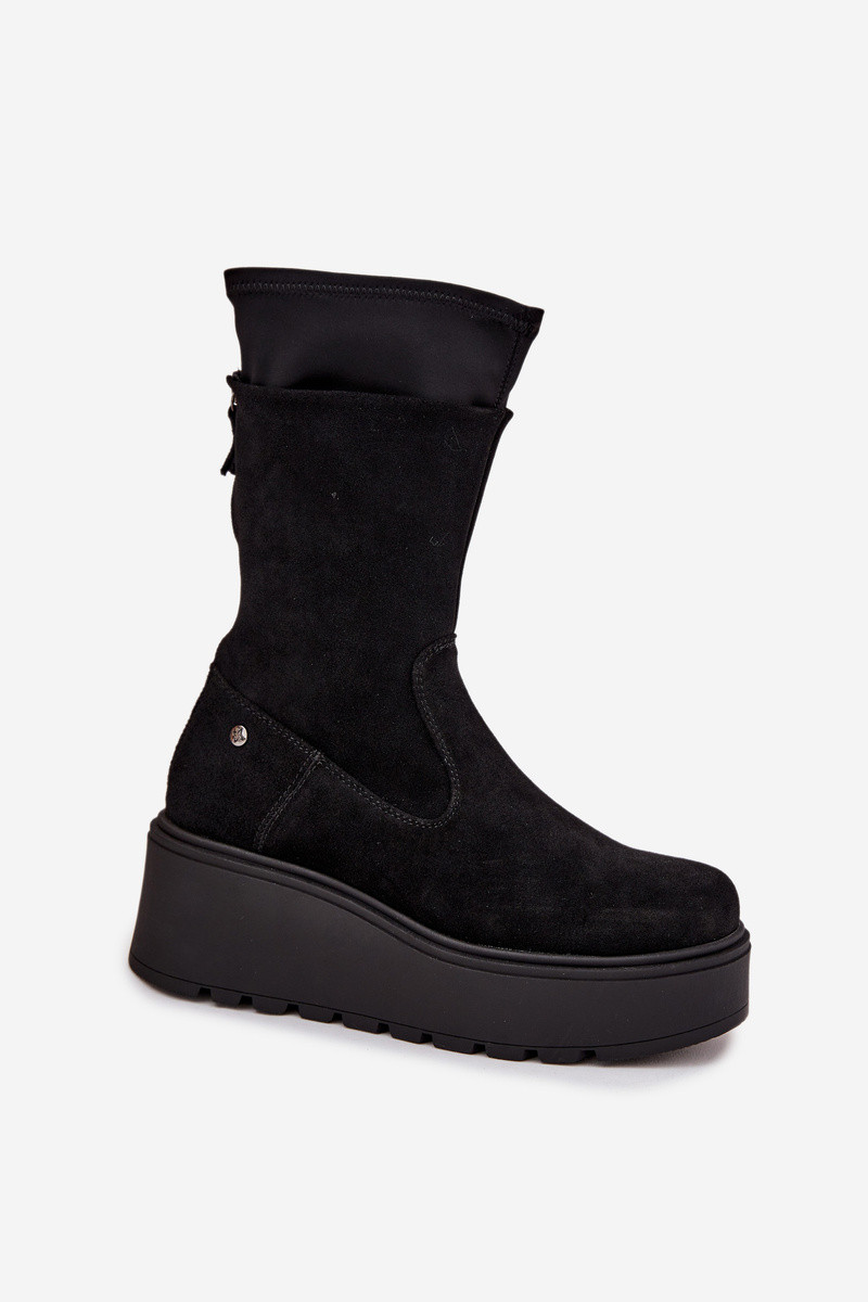 Bottes en cuir et daim avec plateforme Tai turiciejka A7161-20 couleur noire