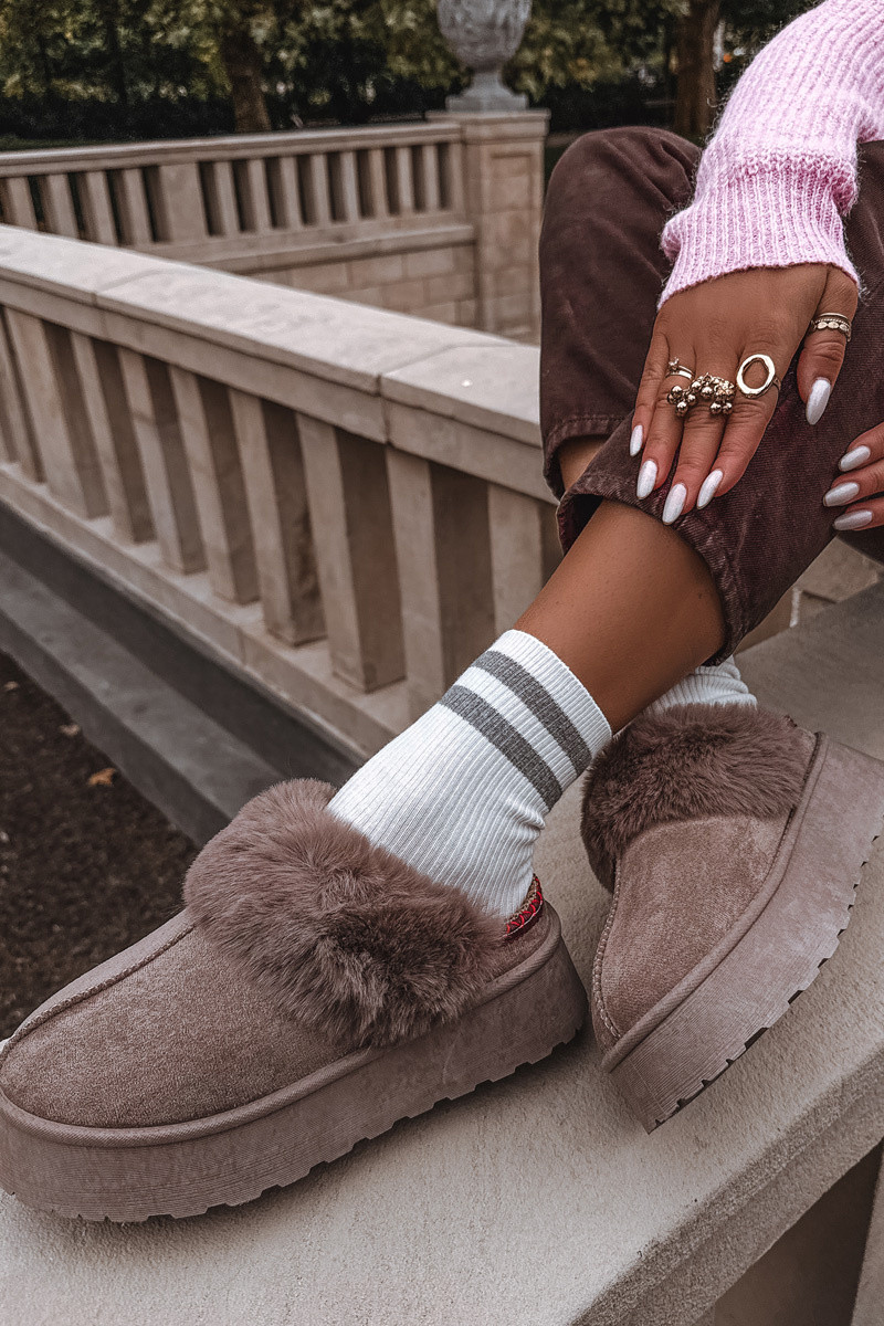 Bottes de neige à plateforme et fourrure avec broderie couleur sable Querina
