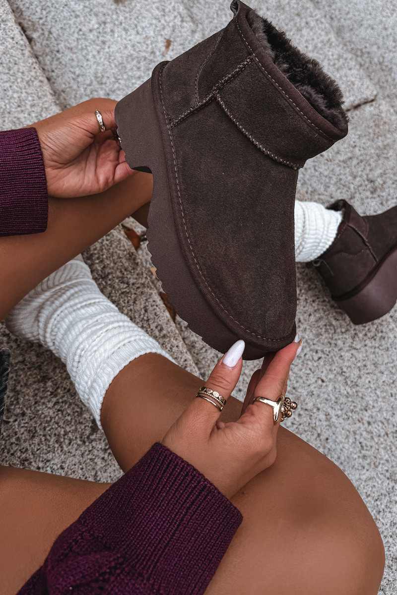Bottes de neige en daim naturel isolées avec fourrure à l'intérieur couleur chocolat Milora
