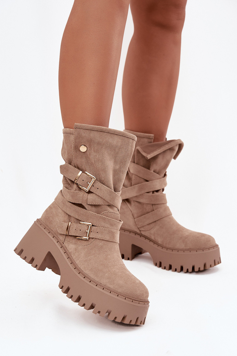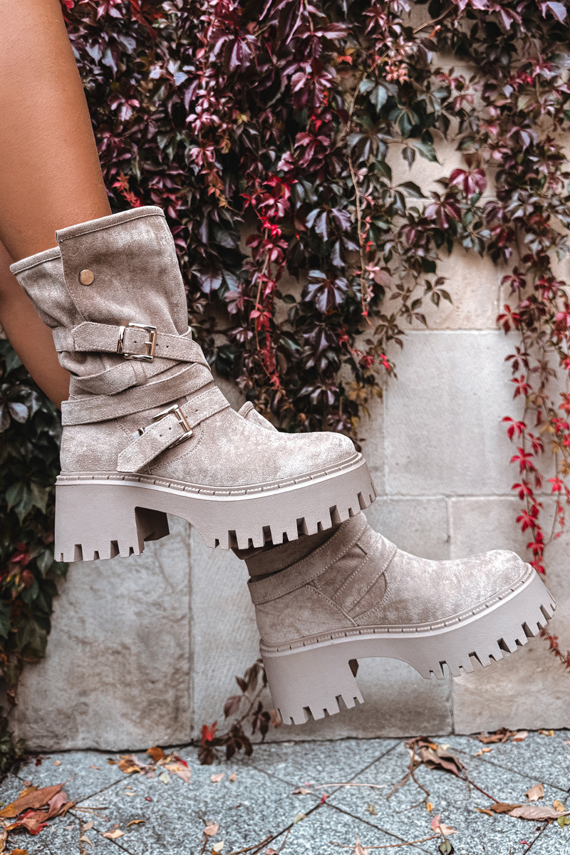 Bottines pour femmes à talons épais avec boucles et lanières couleur sable Nerelisa
