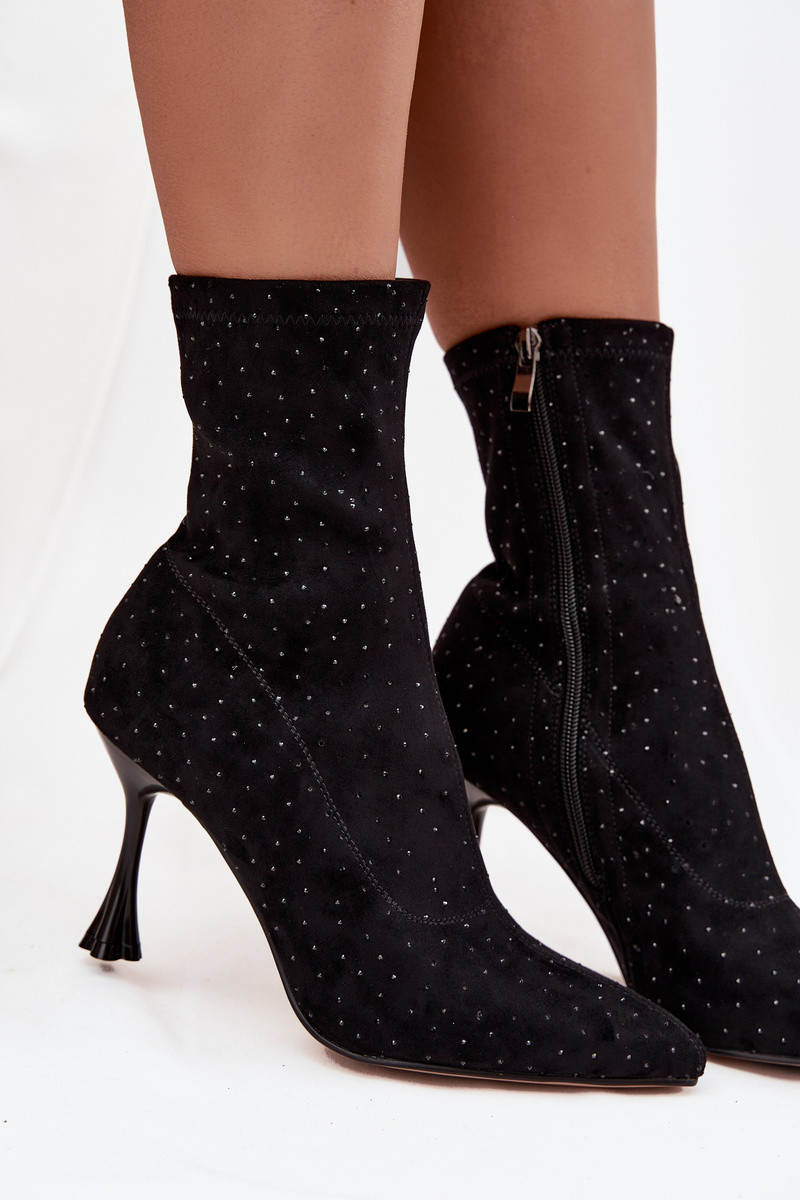 Bottines décorées pour femmes avec talons fins D&A JC52-882 couleur noire
