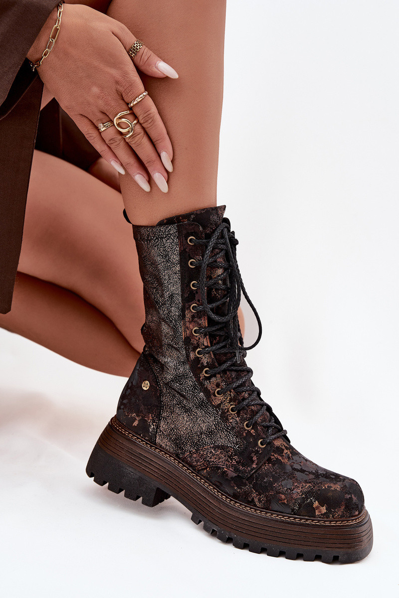 Bottes pour femmes bottes d équitation hautes Il fautciejka 06203-32 brun-couleur dorée