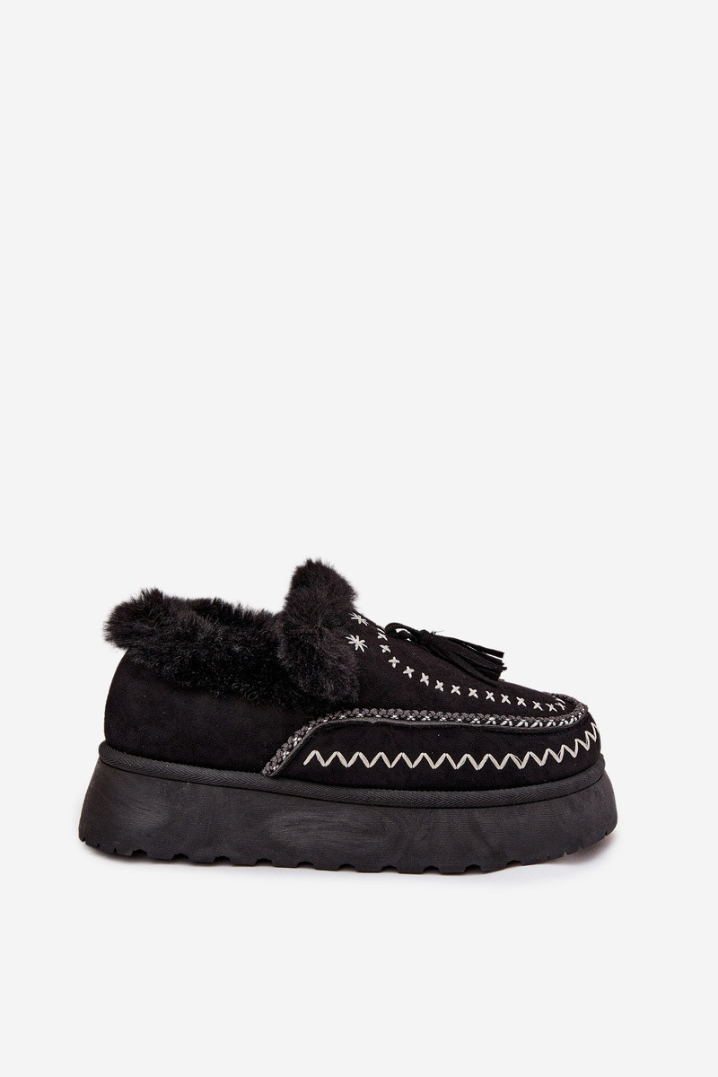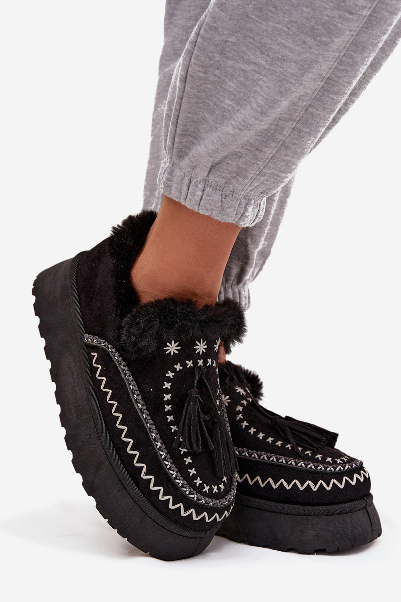 Bottes de neige Féminin avec une plateforme avec un manteau de fourrure Et la frange couleur noire Ferayne