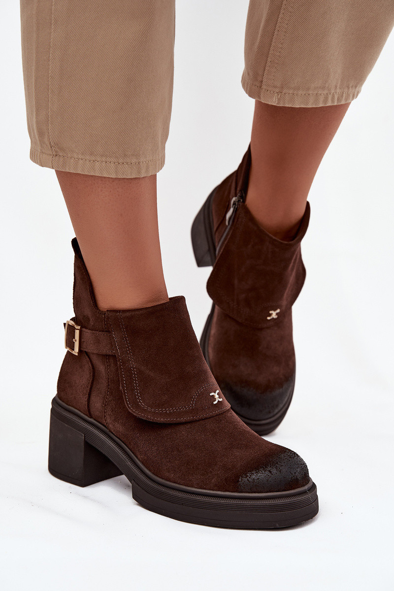 Bottines chaudes en suédine naturelle "Zazoo 1156" couleur chocolat