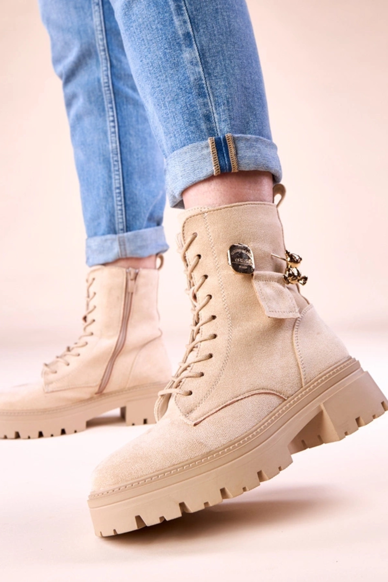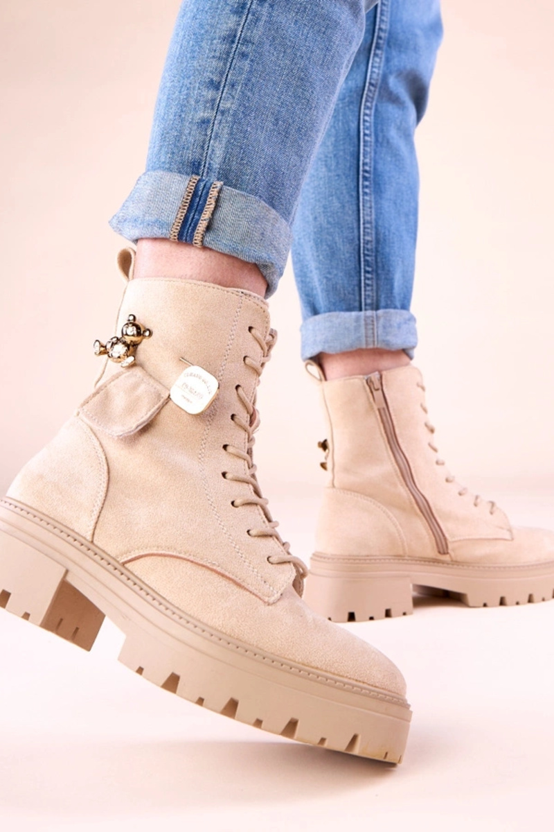 Bottines couleur sable pour femmes avec un ours en or Messey