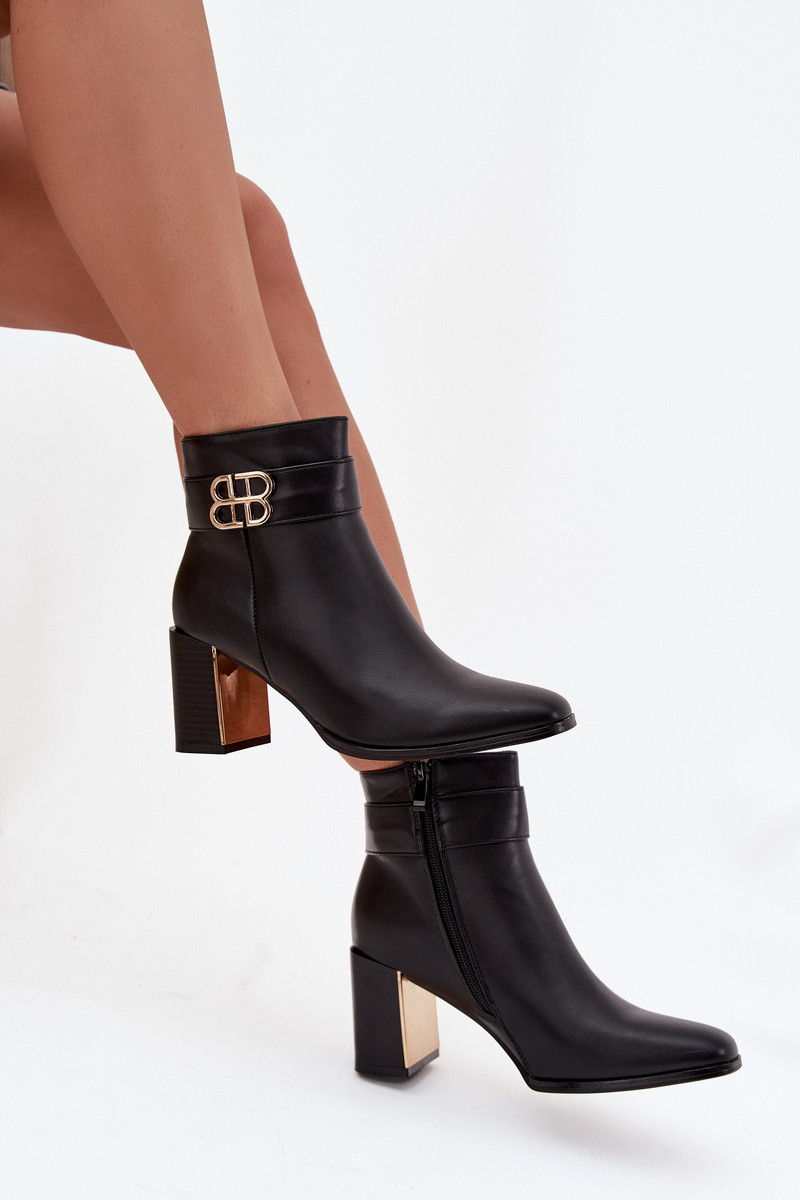 Bottines pour femmes avec brides et détails dorés couleur noire « Galinne »
