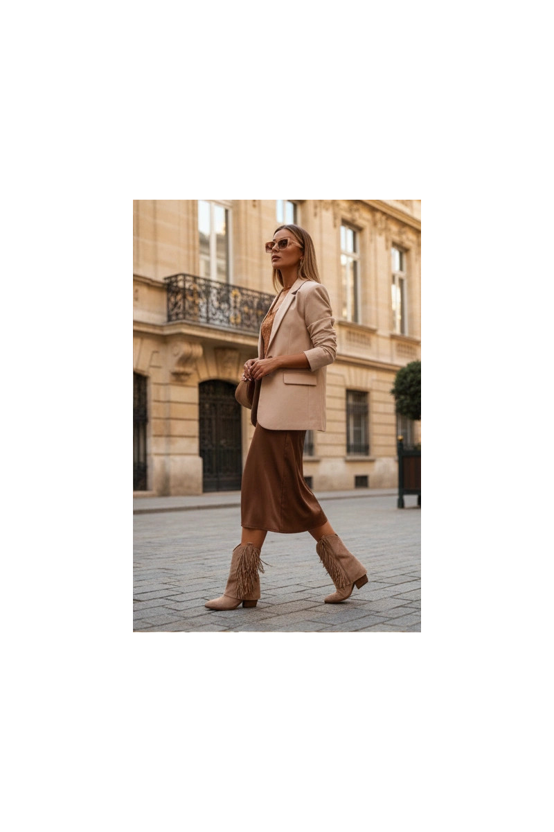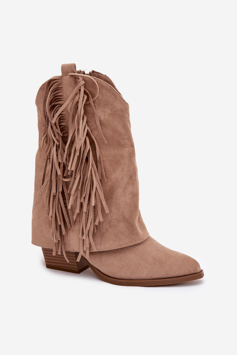 Bottines pour femmes chaki de style cowboy avec des franges et des talons Gralina