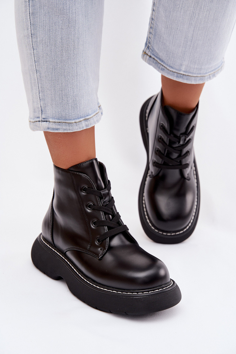 Harmine - Bottines pour femmes isolées avec plateforme et lacets couleur noire